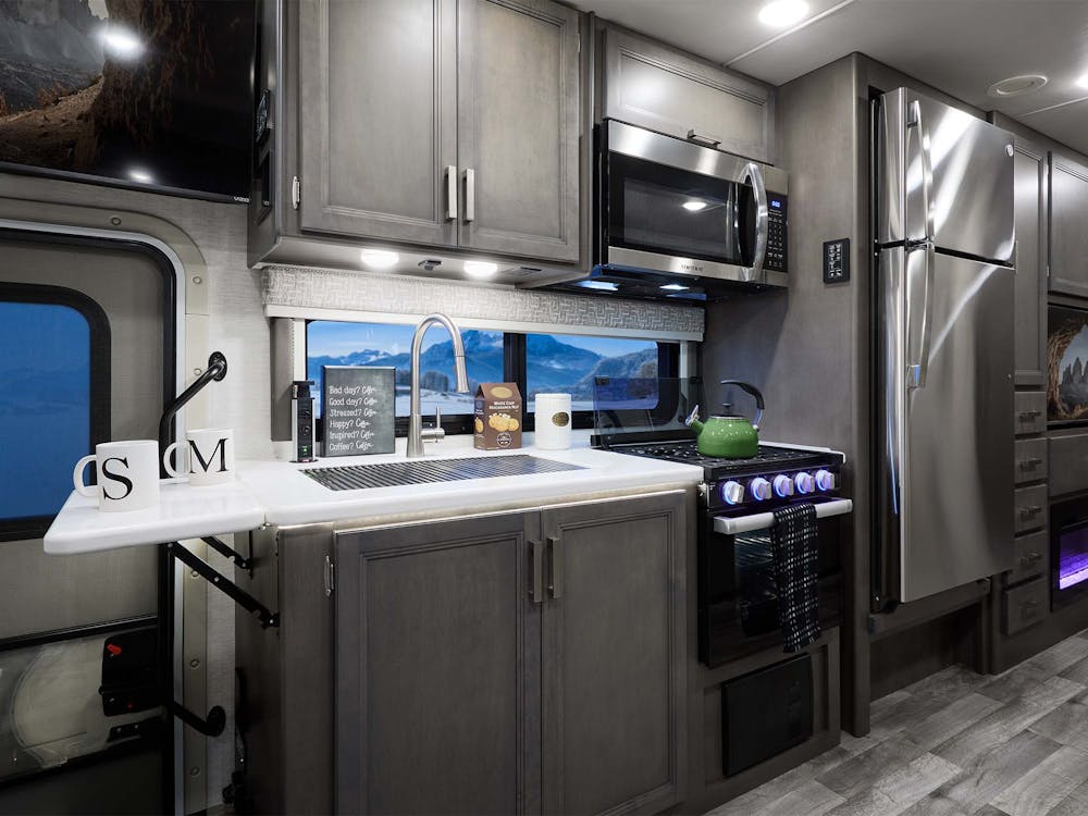 Whether exploring scenic landscapes or embarking on cross-country journeys, the Magnitude® GRAND has the comfort, flexibility, and freedom you need to live on the road. With its spacious interior and modern amenities, this Super C RV is the perfect home away from home for outdoor enthusiasts. Immerse yourself in new experiences with this diesel motorhome.