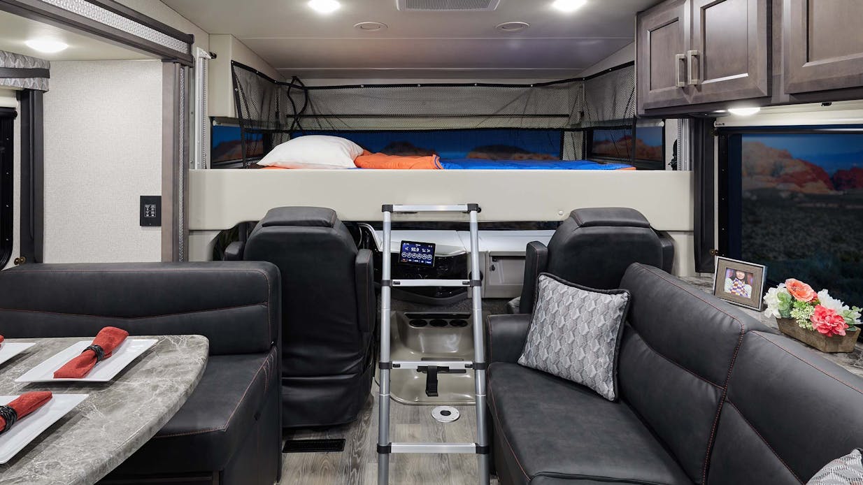 Additional Sleeping Space is available above the cockpit with the Power Drop-Down Hide-Away Bunk and features a Cotton Cloud Mattress for a great night’s sleep. Extra sleeping room to bring the whole family along or hide away when not in use.